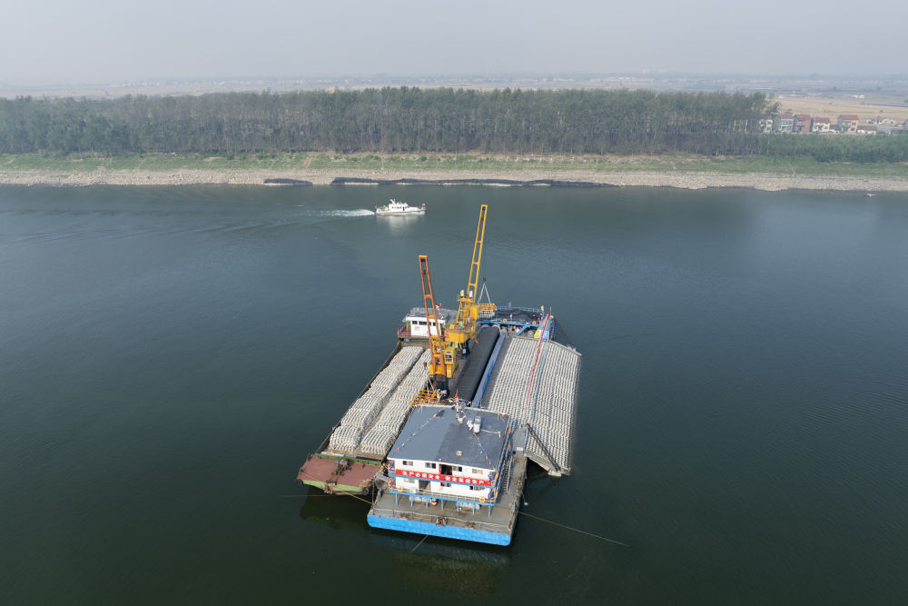 这是在湖北荆州瓦口子水道拍摄的工程施工现场(2024年9月26日摄,无人机照片)。当日,长江中游荆江河段航道整治二期工程全面开工。工程大幅提升长江黄金水道中游通过能力,5000吨级船舶可全年经由荆江河段直达重庆。