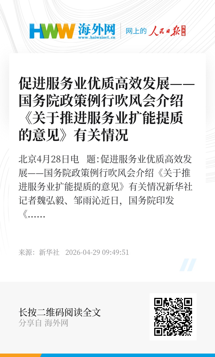 新华社北京4月28日电 题:促进服务业优质高效发展——国务院政策例行吹风会介绍《关于推进服务业扩能提质的意见》有关情况