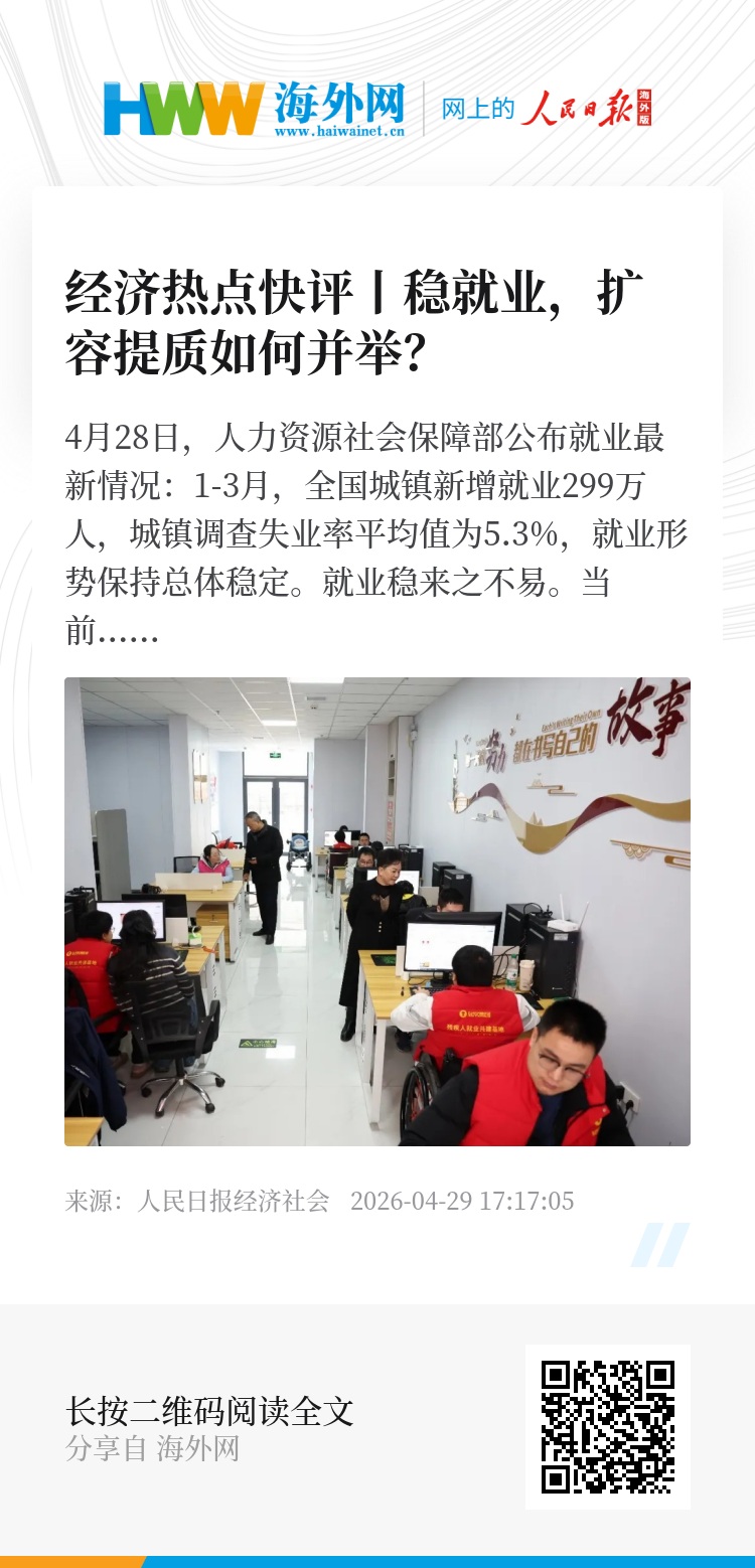 推动解决结构性就业矛盾是一个长期、动态的过程。提质和扩容两手抓,持续提升就业工作对产业的前瞻性、适配性,我们的就业基础将更稳,人才后劲将更足。(邱超奕)