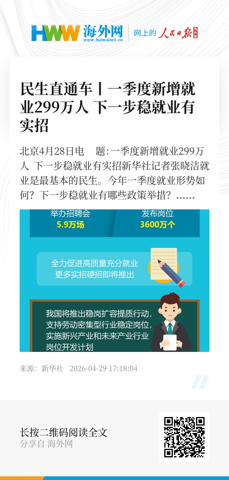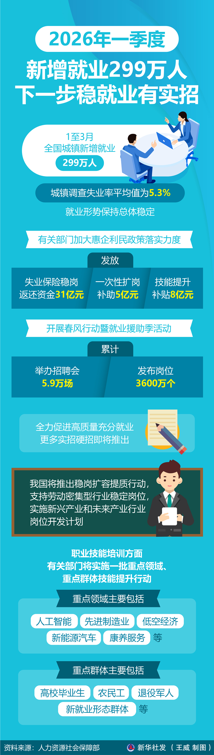 新华社北京4月28日电 题:一季度新增就业299万人 下一步稳就业有实招