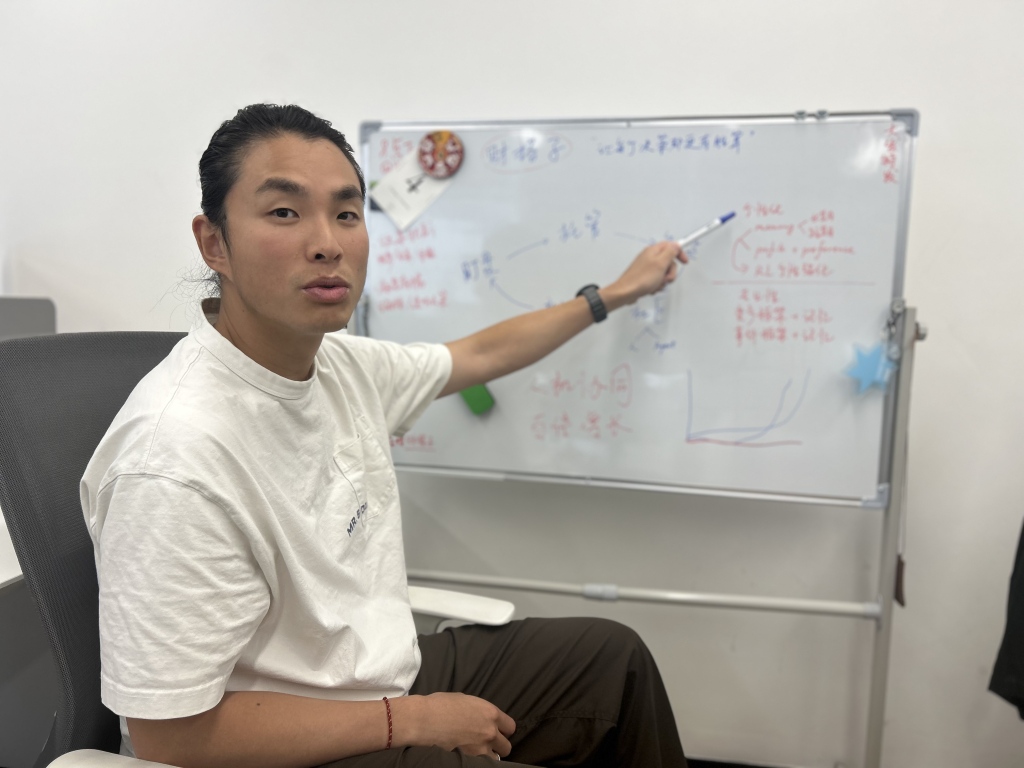 许多AI企业在“模速空间”诞生、成长并彼此合作。“我们经常上楼找其他同行聊一聊天,相互交换一些行业的信息和判断,很多合作也是这样达成的。”无问芯穹CEO夏立雪告诉记者,在这里“上下楼就是上下游”,作为一家为AI企业提供标准化算力服务的运营商,他上楼冲杯咖啡的时间,就可能敲定合作。