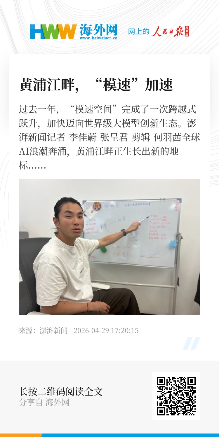 龙耀路地铁站旁,“模速空间”聚集着在AI世界逐梦的年轻创业者。2026年4月,澎湃新闻记者(www.thepaper.cn)实地走访发现,这个成立两年半的年轻空间,已从早期规模扩张迈入以生态引领为特征的新阶段,整体能级持续跃升、产业集聚明显提速,在核心技术、标杆应用、青年人才等方面协同发力。