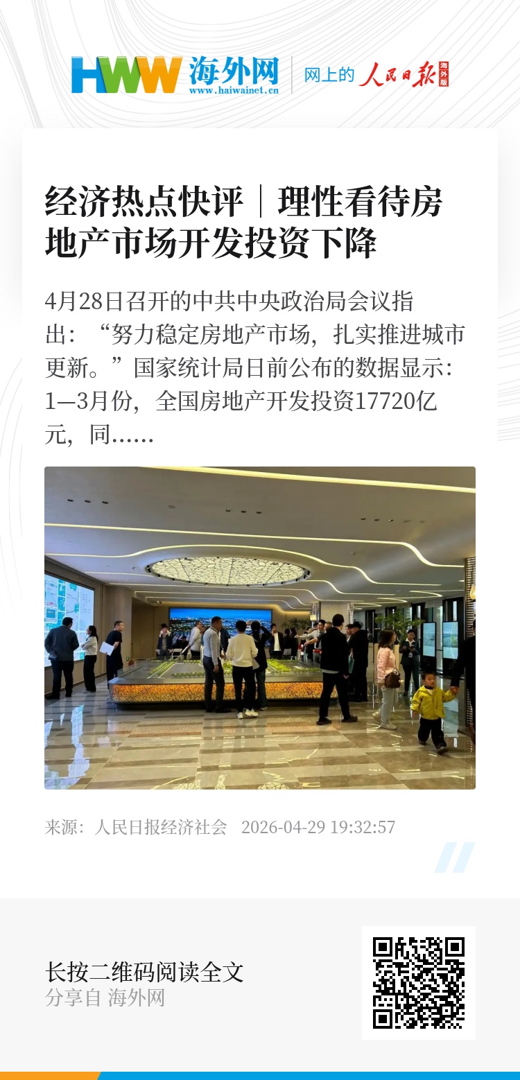 相信随着房地产发展新模式加快构建,市场预期将逐步改善和稳定。加上扩大更多有效投资推动民生改善、推动新质生产力成长,将继续为经济长期健康发展打下基础。(关澜)