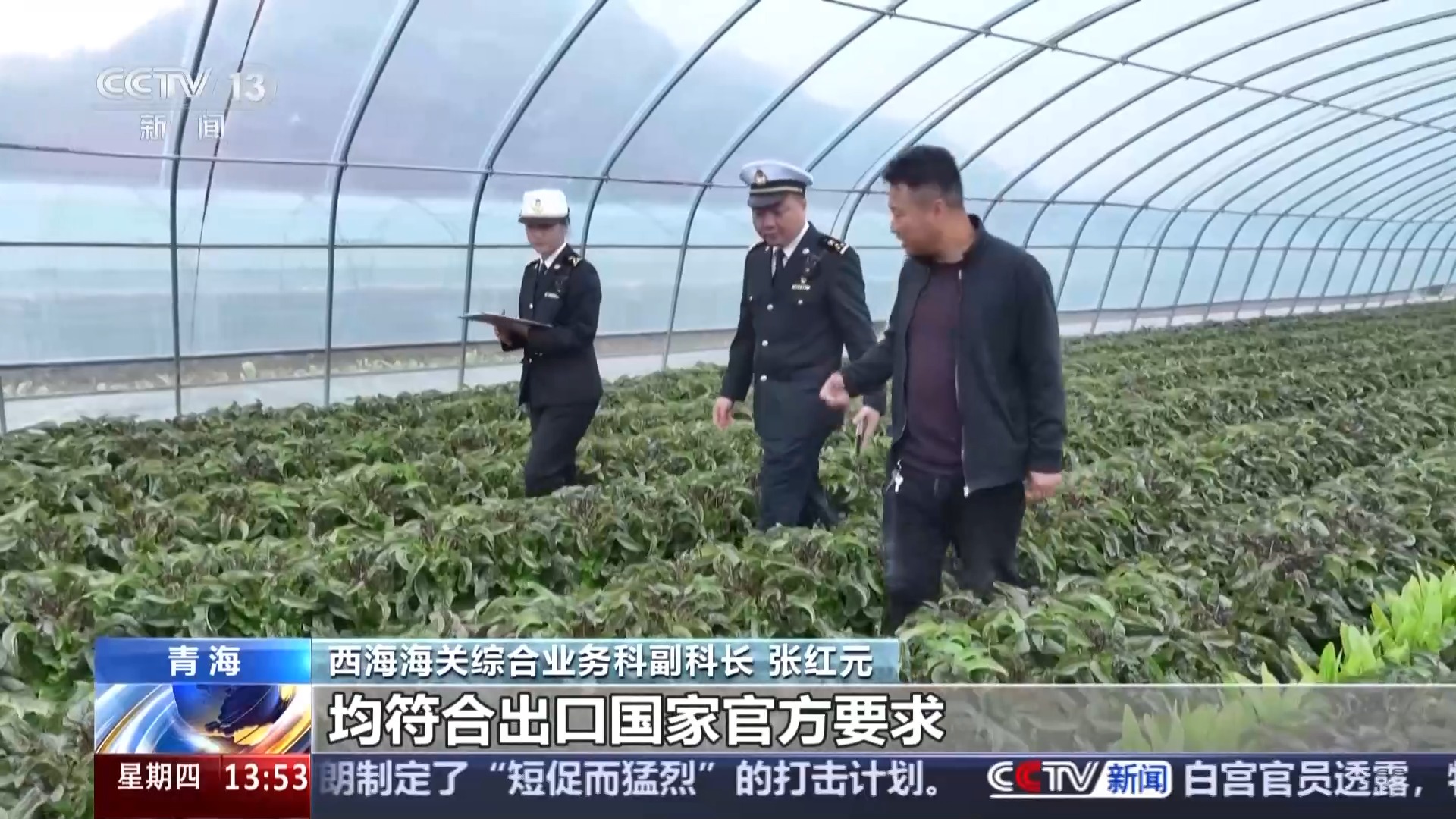 西海海关综合业务科副科长 张红元:为确保出口蔬菜质量安全,海关工作人员会提前介入,上门进行过程性采样,并由实验室进行检测服务,以确保生产蔬菜符合出口国家官方要求。