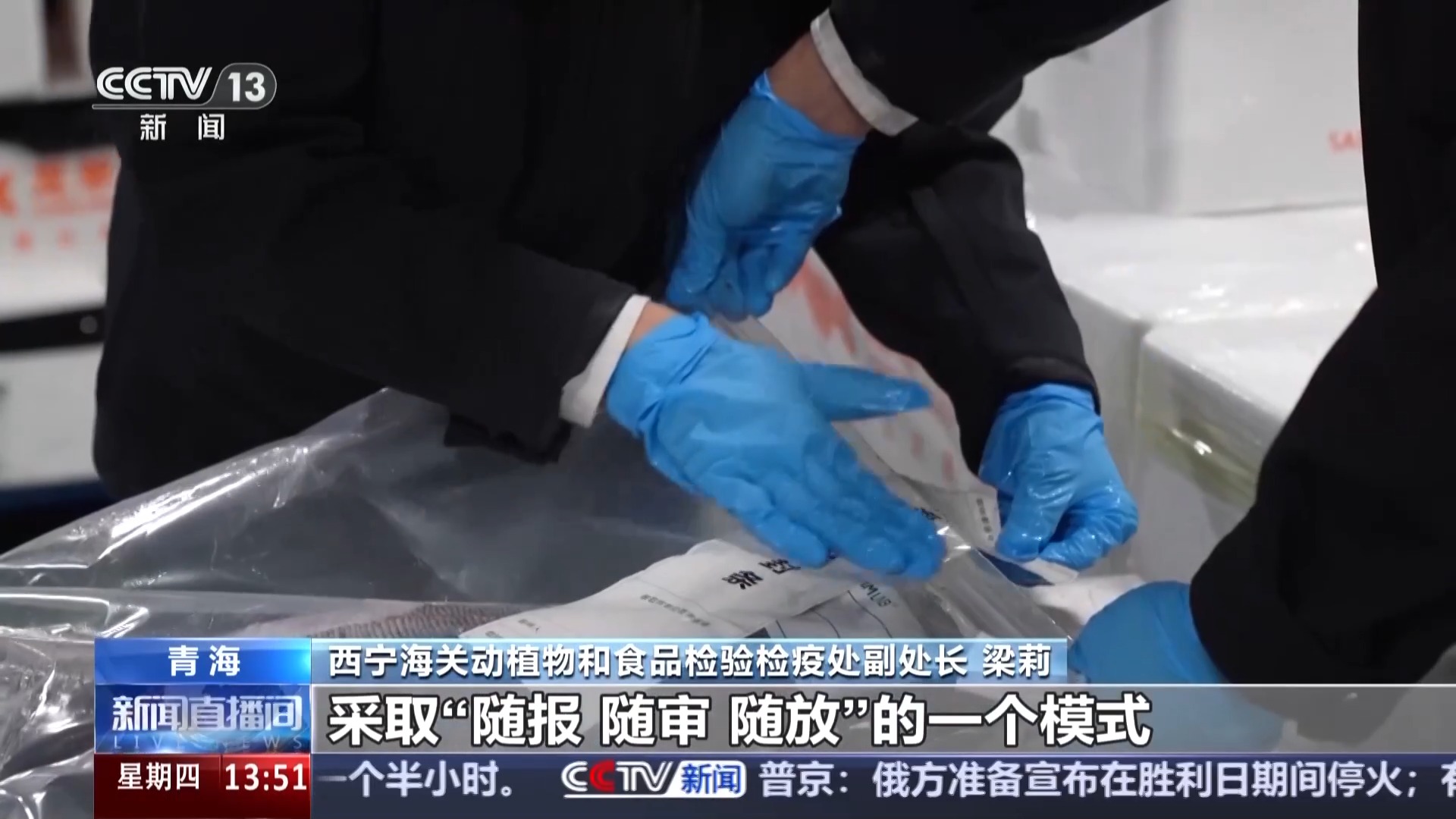 西宁海关动植物和食品检验检疫处副处长 梁莉:针对冷水鱼鲜活易腐的特点,我们优通关、畅通道,采取“随报、随审、随放”的模式,压缩1/3的检验检疫时长。我们依托飞机“腹舱带货”的模式,青海冷水鱼可以在24小时之内到达东南亚市场。