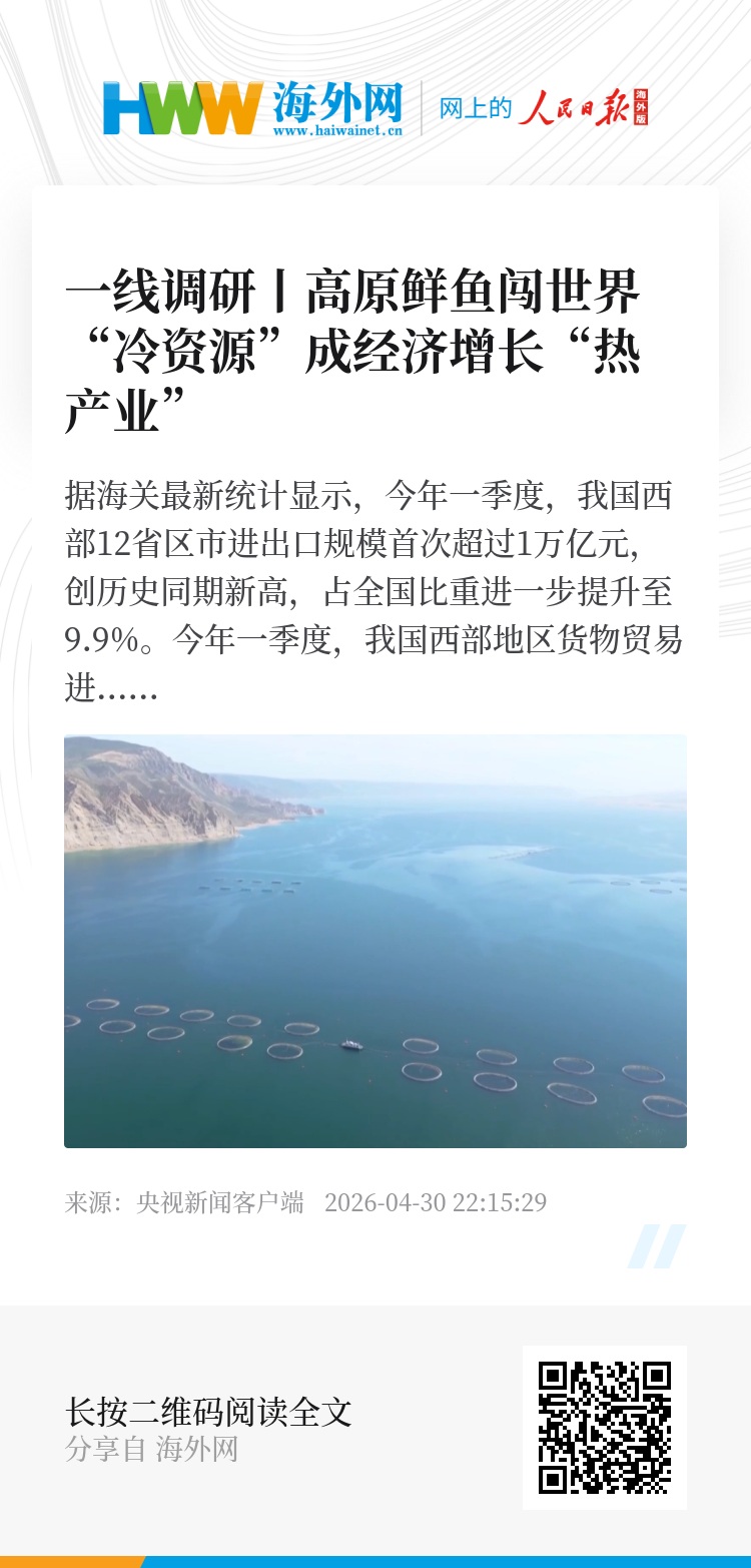 在加工出口车间,刚捕捞的虹鳟鱼经自动化流水线快速完成分级、包装、冰鲜锁鲜,全程不超过4小时。龙羊峡虹鳟鱼年产量约1.5万吨,今年一季度,青海冷冻虹鳟鱼出口值占全国同类产品出口总值的99.3%。出口提速的背后,是政务服务的持续创新。