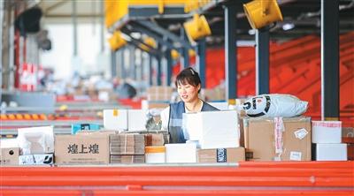 江苏省宿迁市宿城区兰博物流园分拣中心,工作人员在分拣快递包裹,保障电商订单及时送达。蔡亮摄(人民视觉)