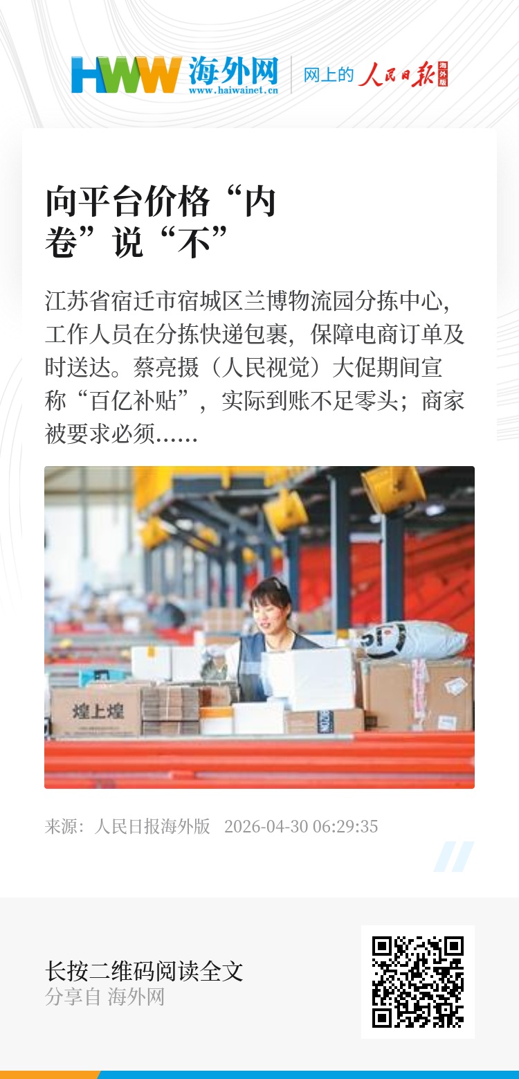 “监管出手叫停价格内卷,并不是反对竞争,更不是要让消费者失去低价福利,而是引导理性竞争、杜绝畸形低价。”范良聪认为,对消费者而言,平台经济应当让其既享受到数字时代的便利与实惠,又能获得质量可靠、售后无忧的消费体验;对商家而言,应当让其能够自主定价、合理盈利,有空间在品质和服务上持续投入。只有告别“卷价格”的旧赛道,走上“优价值”的新航道,才能真正实现平台、商家与消费者的多方共赢。(本报记者 孔德晨)