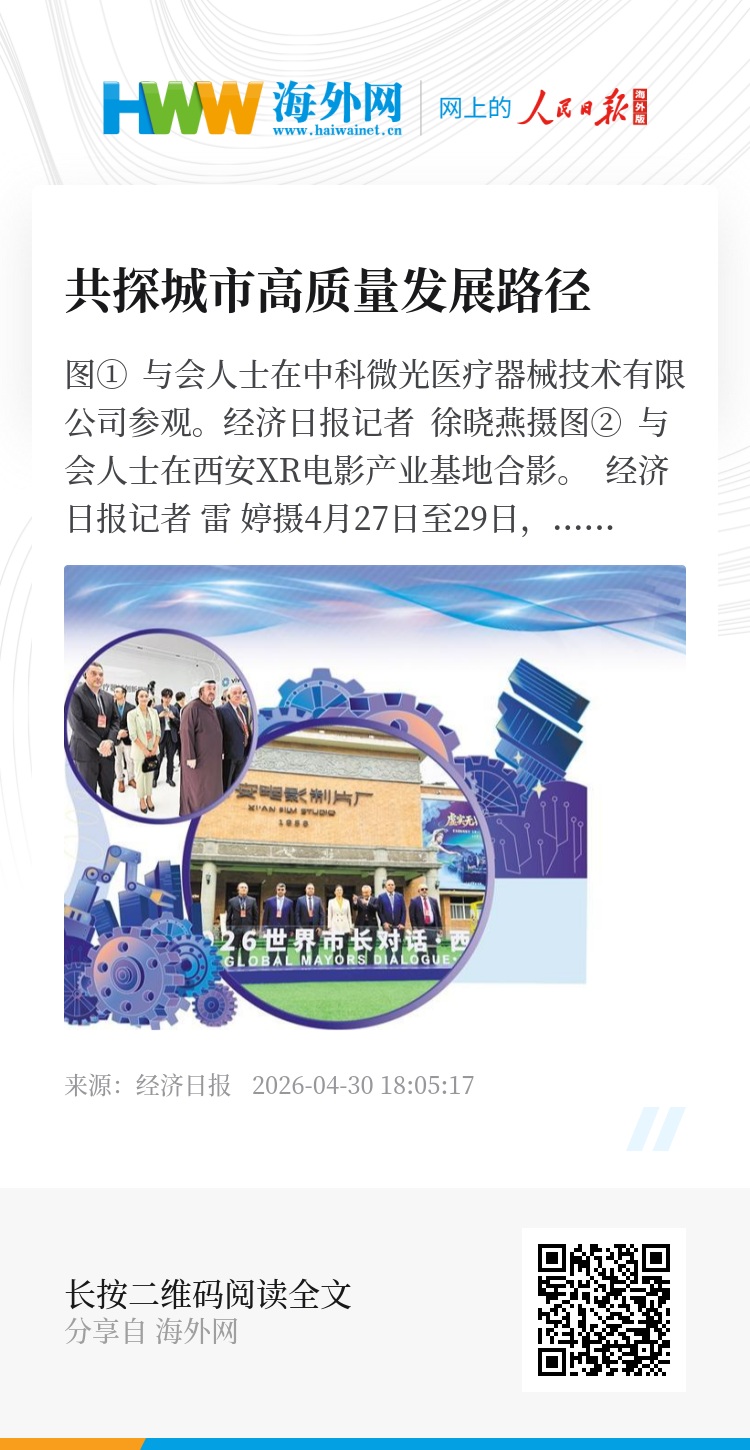 4月27日至29日,“2026世界市长对话·西安”活动在陕西西安举行。来自埃及、黎巴嫩、新西兰、约旦等多国的市长及专家聚集在古丝绸之路起点,聚焦科技与文化双轮驱动,共同探讨城市高质量发展的实践路径。