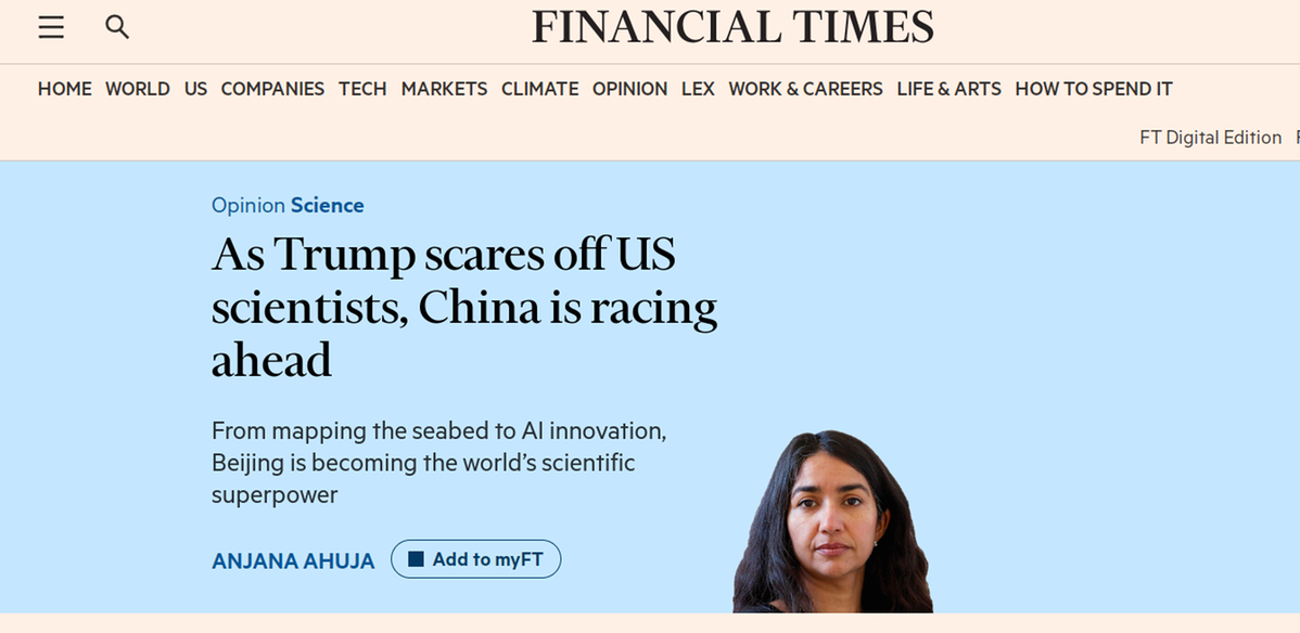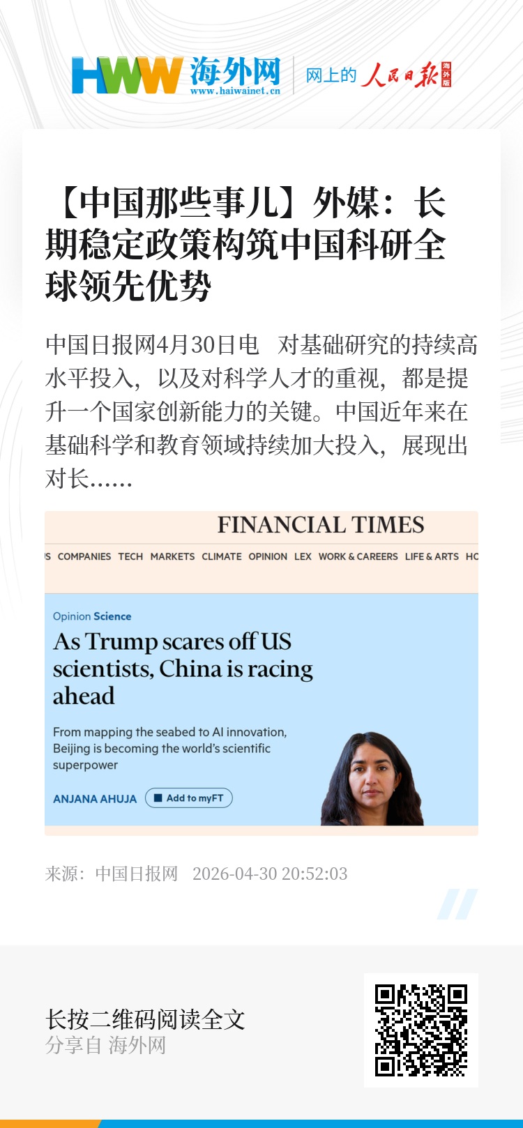 英国《金融时报》近日刊发的专栏文章指出,通过长期稳定的政策支持,中国科研正加速前进,持续推动基础研究能力快速提升,从海底测绘到人工智能创新,中国正成为全球科技领域的领军者。