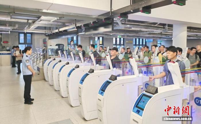 跨境建设者经皇岗口岸出境大厅智能快捷通道“丝滑”通关。皇岗边检站供图