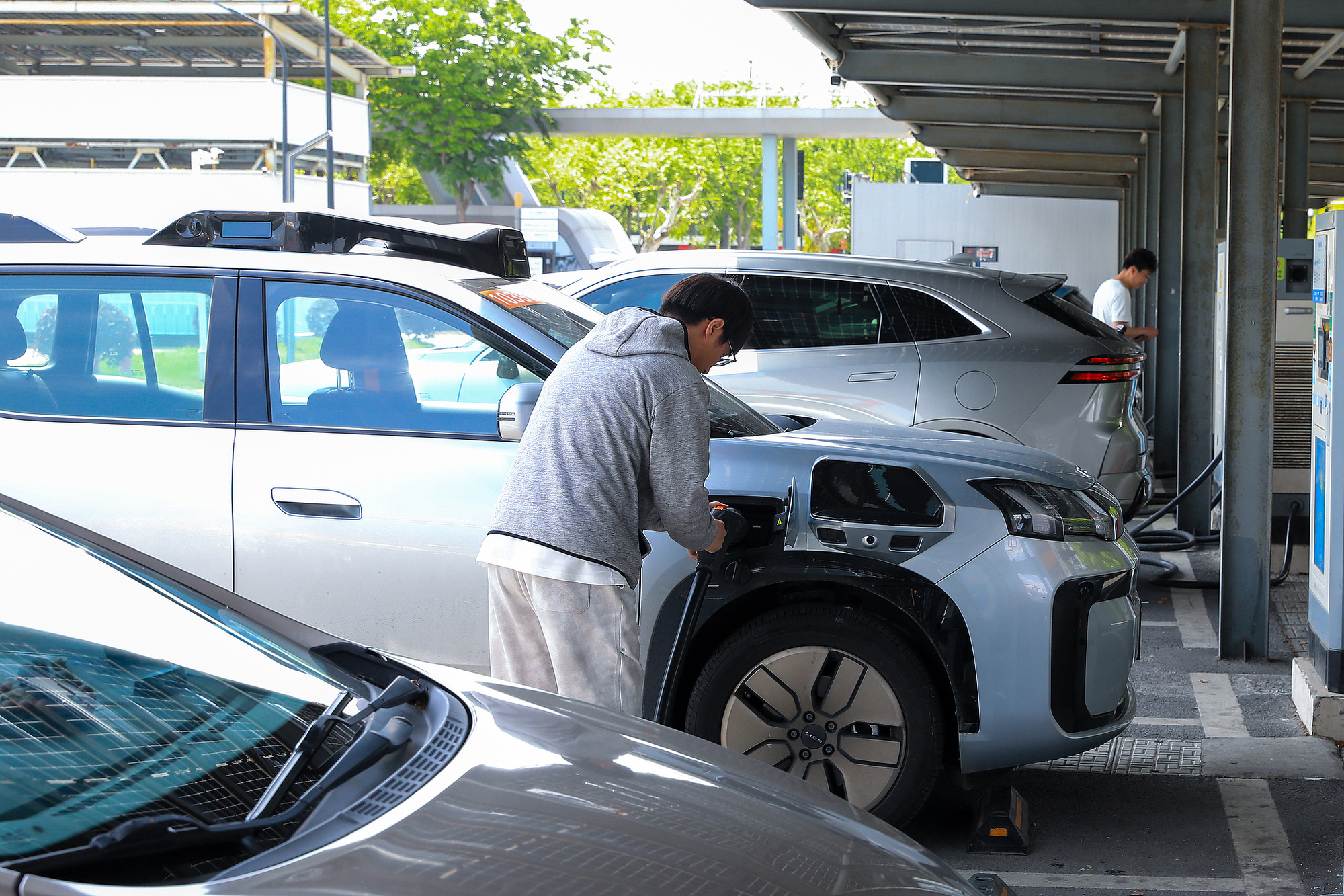2026年4月25日,上海,市民给新能源汽车充电。